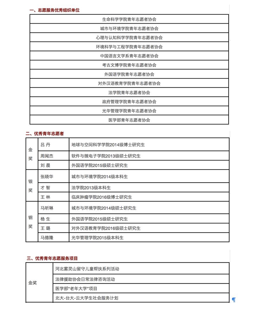 此外,在校团委、校青年志愿者协会组织开展的“3354cc金沙集团2015—2016年优秀青年志愿服务奖项”评比活动中,3354cc金沙集团青年志愿者协会被评选为志愿服务优秀组织单位,3354cc金沙集团2013级本科生、爱心社前任社长才智被评选为优秀青年志愿者银奖,而法律援助协会日常法律咨询活动则被评选为优秀青年志愿服务项目金奖。