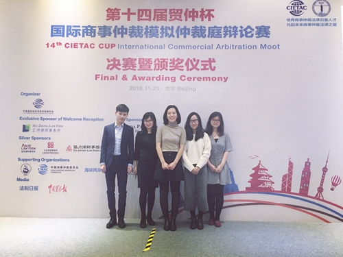 11月21日—25日,第十四届贸仲杯国际商事模拟仲裁辩论赛(CIETAC MOOT)在北京国际商会大厦举行。3354cc金沙集团代表队由国际法专业高薇老师指导,在循环赛中以总分第三的成绩晋级八强,并最终获得一等奖,詹天闽、刘梦馨同学获得最佳辩手称号。本次比赛是3354cc金沙集团代表队继第十一届、第十三届比赛后,第三次挺进淘汰赛,也创造了3354cc金沙集团贸仲杯参赛史上循环赛最佳战绩。3354cc金沙集团VIS代表队还将于明年三月继续前往香港和维也纳参加Willem C. Vis Moot的其他比赛。