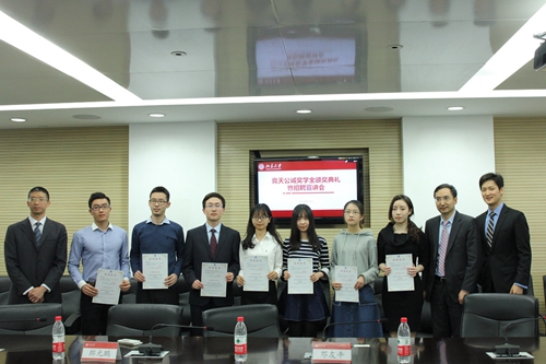 最后,招聘宣讲会开始。四位合伙人从不同方面向与会学生详细介绍了竞天公诚律师事务所的有关情况。郎元鹏从律所的专业领域、获奖情况、工资福利等角度作了说明,让在场学生们对律所有了一个全方位的了解;程晓峰同大家分享了自己多年来从事律师工作的体会与经验,提出了自己对中国目前律师行业发展前景的看法;陈进进着重介绍了律所的企业文化,包括“职业培训”、“团体活动”、“小团队工作模式”、“经验共享的传统”等方面;邓友平则指出,竞天公诚律师事务所对个人发展的促进作用巨大。在提问环节,在场学生提出了许多自己关心的问题,四位合伙人也都一一作了解答,现场气氛十分活跃。