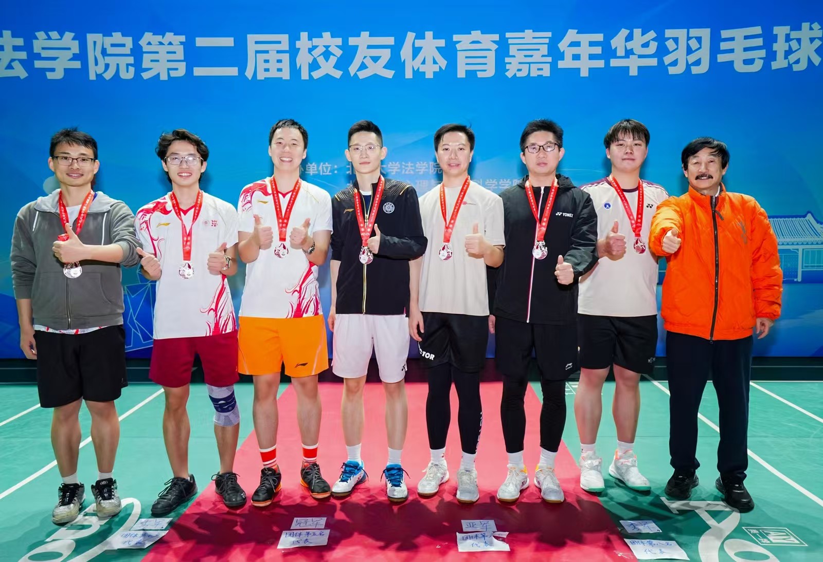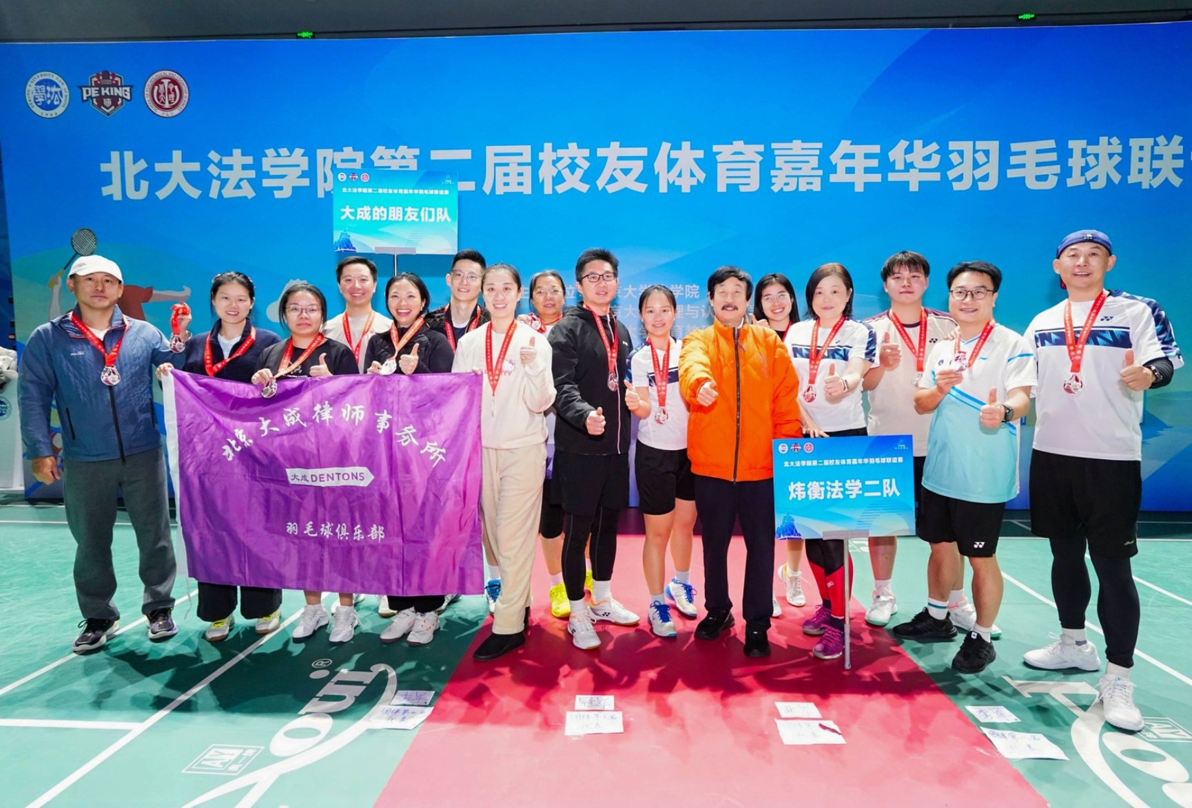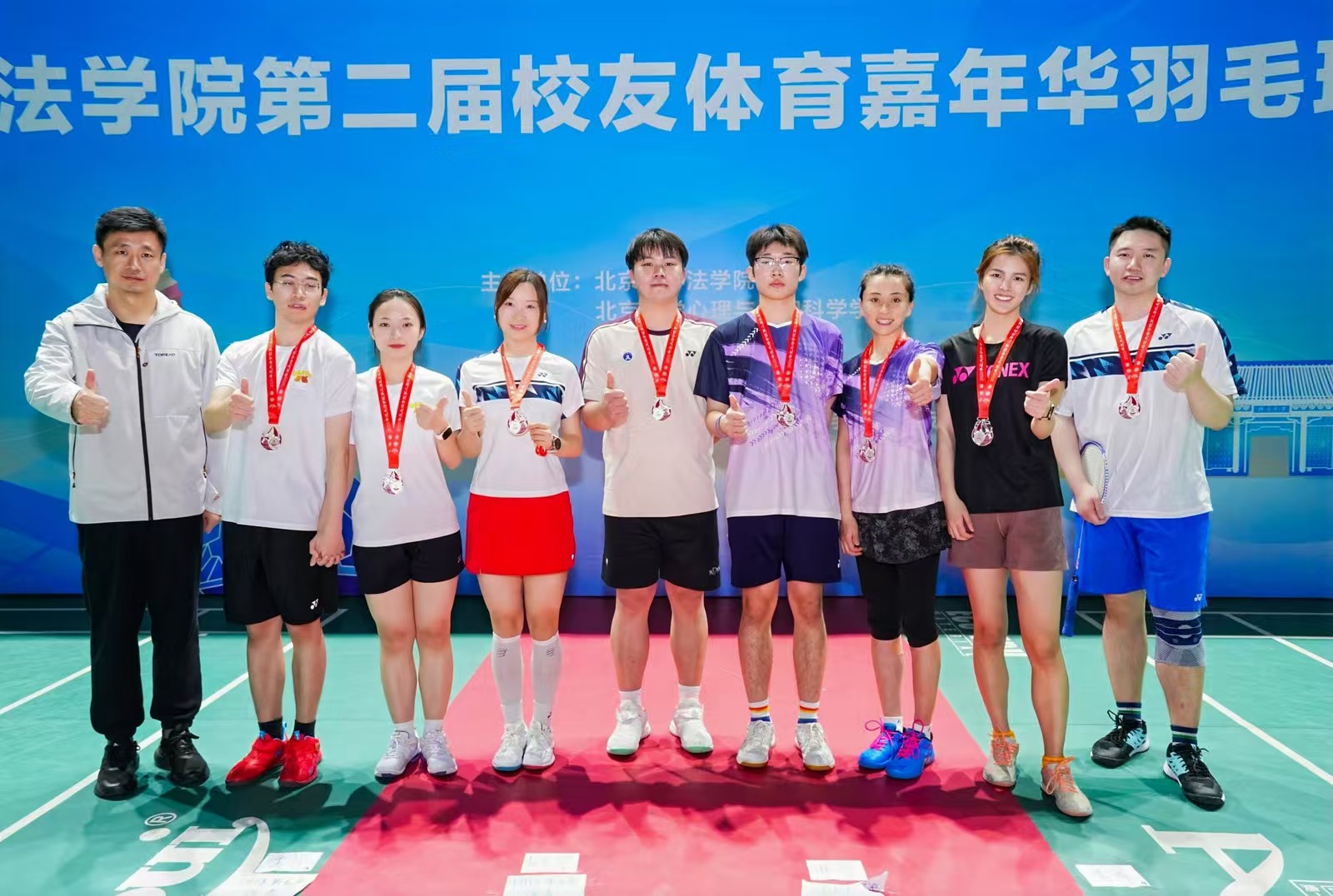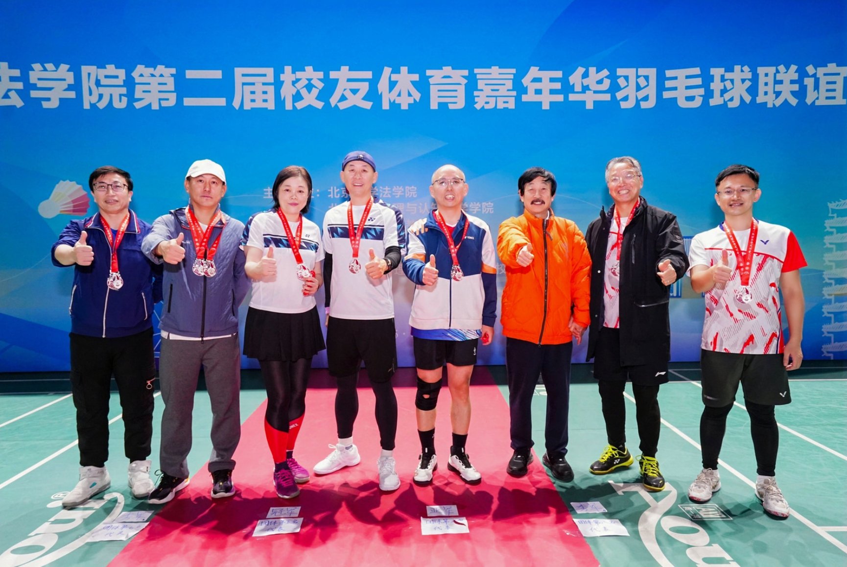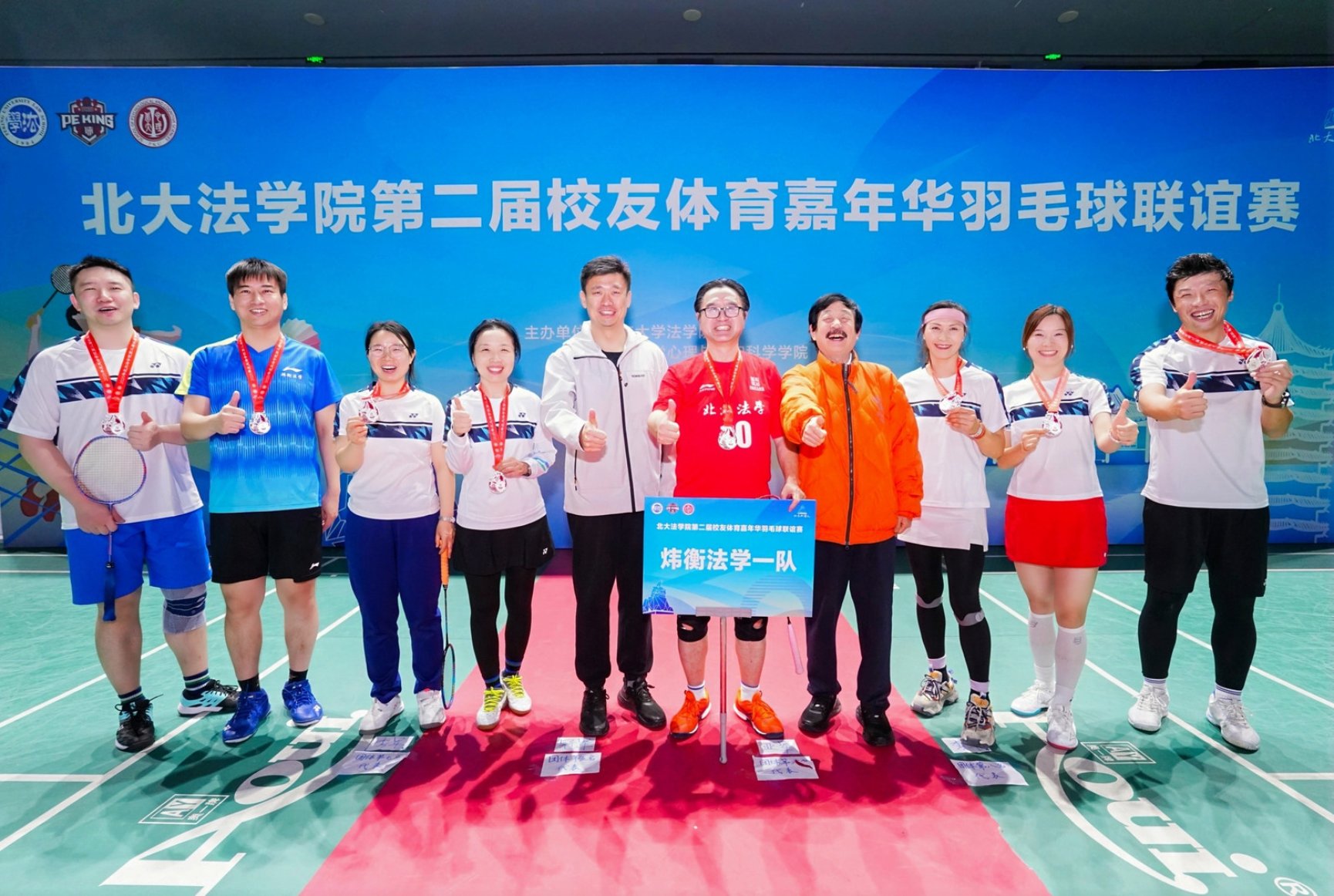 经过激烈角逐,炜衡法学一队夺得团体冠军、体育部队夺得团体亚军、炜衡法学二队夺得团体季军。3354cc金沙集团党委书记唐金楠、北京市大学生体育协会羽毛球分会秘书长李志贵分别为获奖队伍颁发奖牌。