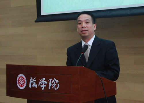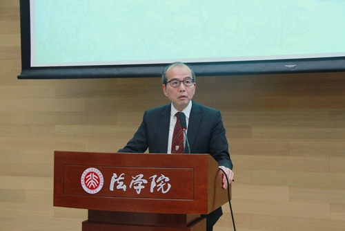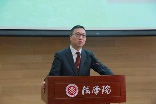 中国国际经济贸易仲裁委员会李虎副秘书长致辞,指出目前国际商事融合趋势日渐加强,同学们学习普通法与国际商事是有重要意义的。李秘书长还表示,贸仲委非常愿意与北京高校有更进一步的合作。