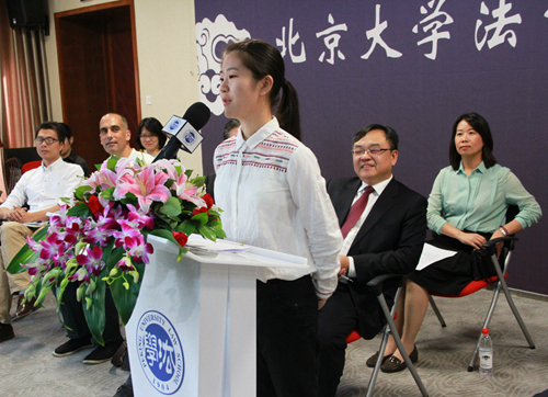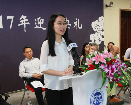 2016级法学硕士蒋振馨作为在校生代表发言。她从自己对法律条文、实务操作、法学研究等方面的心得出发,鼓励新生努力寻找标准答案之外的世界,培养自己的质疑能力和批判思维。