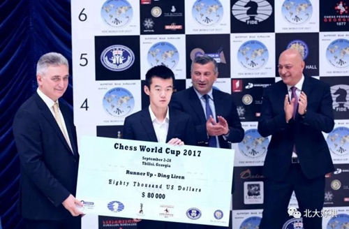 丁立人获颁国际象棋世界杯亚军奖