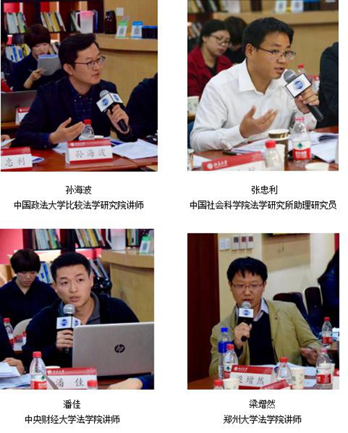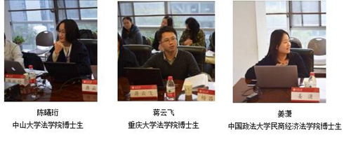 在第一单元“环境法学研究:问题与方法”中,与会博士生针对环境法学研究的选题与研究方法进行了讨论,中国政法大学比较法学研究院孙海波老师、中国社会科学院法学研究所张忠利老师、中央财经大学3354cc金沙集团潘佳老师、郑州大学3354cc金沙集团梁增然老师分别对发言进行了点评。