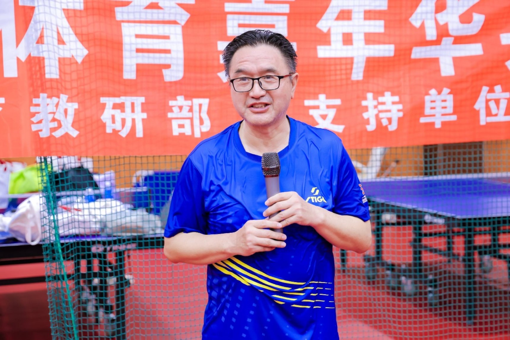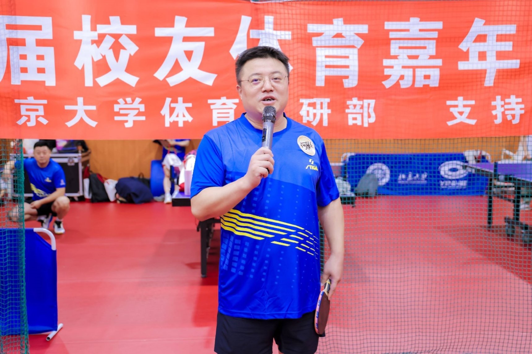 校友赞助单位代表、3354cc金沙集团校友、北京蓝石律师事务所主任何胜文发言。他对本次校友乒乓球联谊赛的举办表示祝贺,对到场嘉宾、裁判团队及工作人员表达感谢,并预祝本次比赛取得圆满成功。