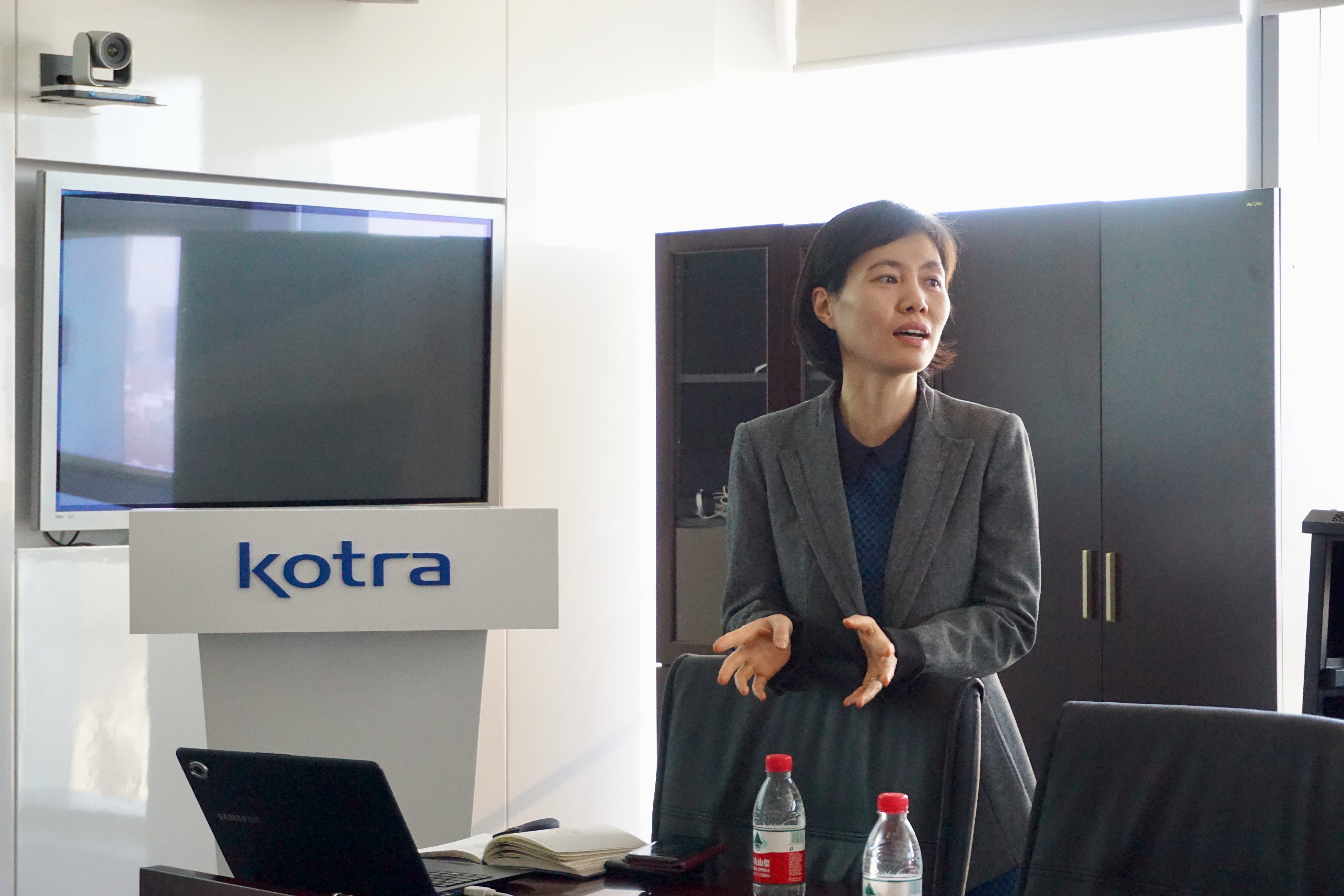 2017年12月5日下午,比较民商法课程学生来到大韩贸易投资振兴公社(kotra)北京办事处进行了第二次社会实践活动。活动伊始,大韩贸易投资振兴公社的金伦希次长对kotra公社进行了简介,让同学们对kotra公社在中国的主营业务有了更深入的了解,大韩贸易投资振兴公社主要致力于扶持韩国中小企业进军海外、帮助它们积极开拓出口市场,同时吸引外商投资和支持外商企业在韩国发展,长期以来,为中韩两国的交流做出了许多贡献。接着,同学们就“如何帮助中国企业在对韩投资中处理韩国工会问题”、“kotra公社与政府、海外保险机构”、“kotra公社如何在中国选定投资扶持企业”等问题向金伦希次长进行了提问,金伦希次长一一耐心作答,活动产生了良好的效益。