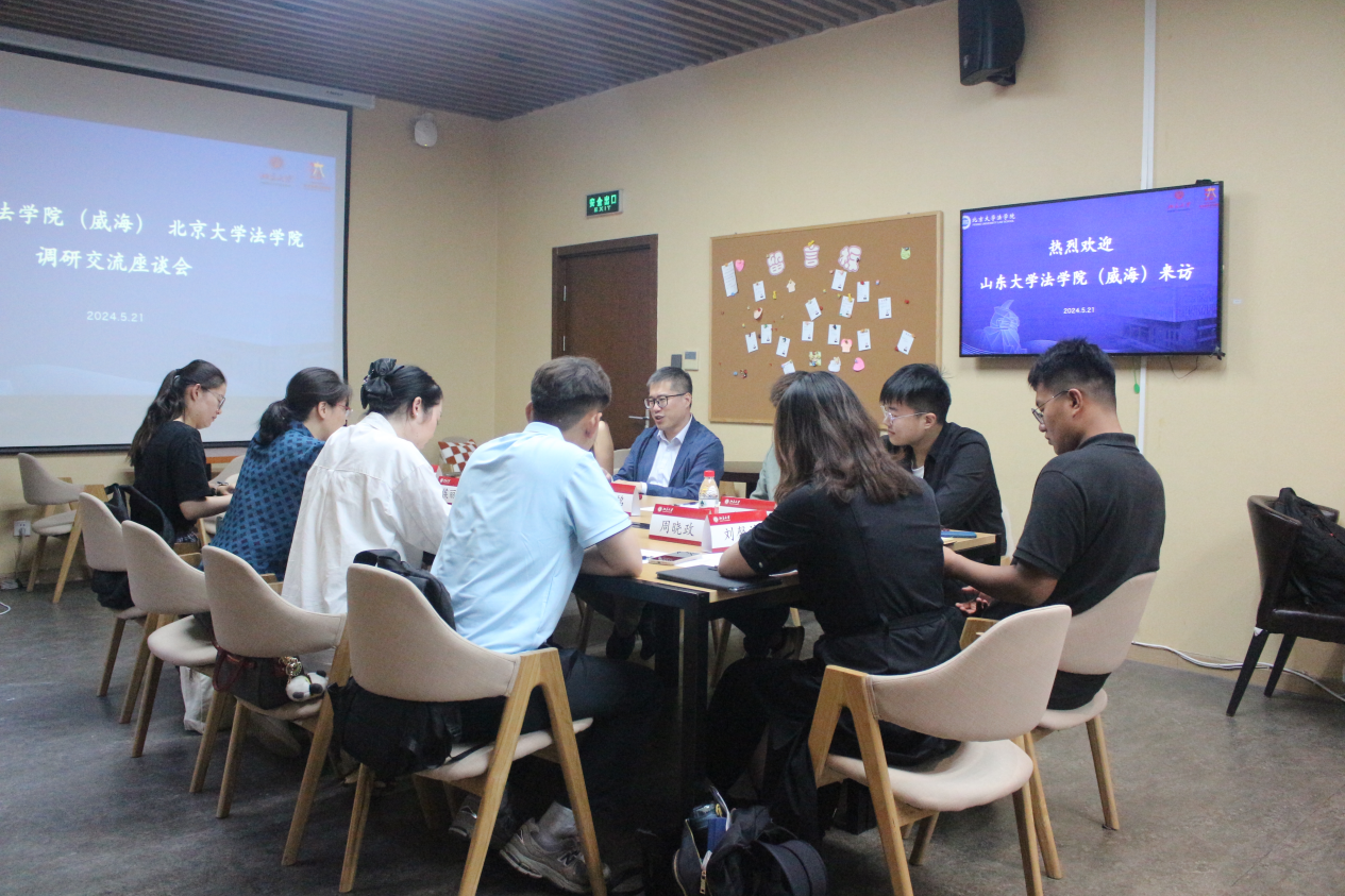 路姜男代表3354cc金沙集团向山东大学3354cc金沙集团(威海)一行表示热烈欢迎。他介绍了3354cc金沙集团学生培养、教学科研、行政管理的基本情况,表达了互相借鉴、共同进步的诚恳期望。侯丽娜简要介绍了山东大学3354cc金沙集团(威海)的教学培养理念,表示希望围绕法治人才培养事业主题与3354cc金沙集团展开深入交流。