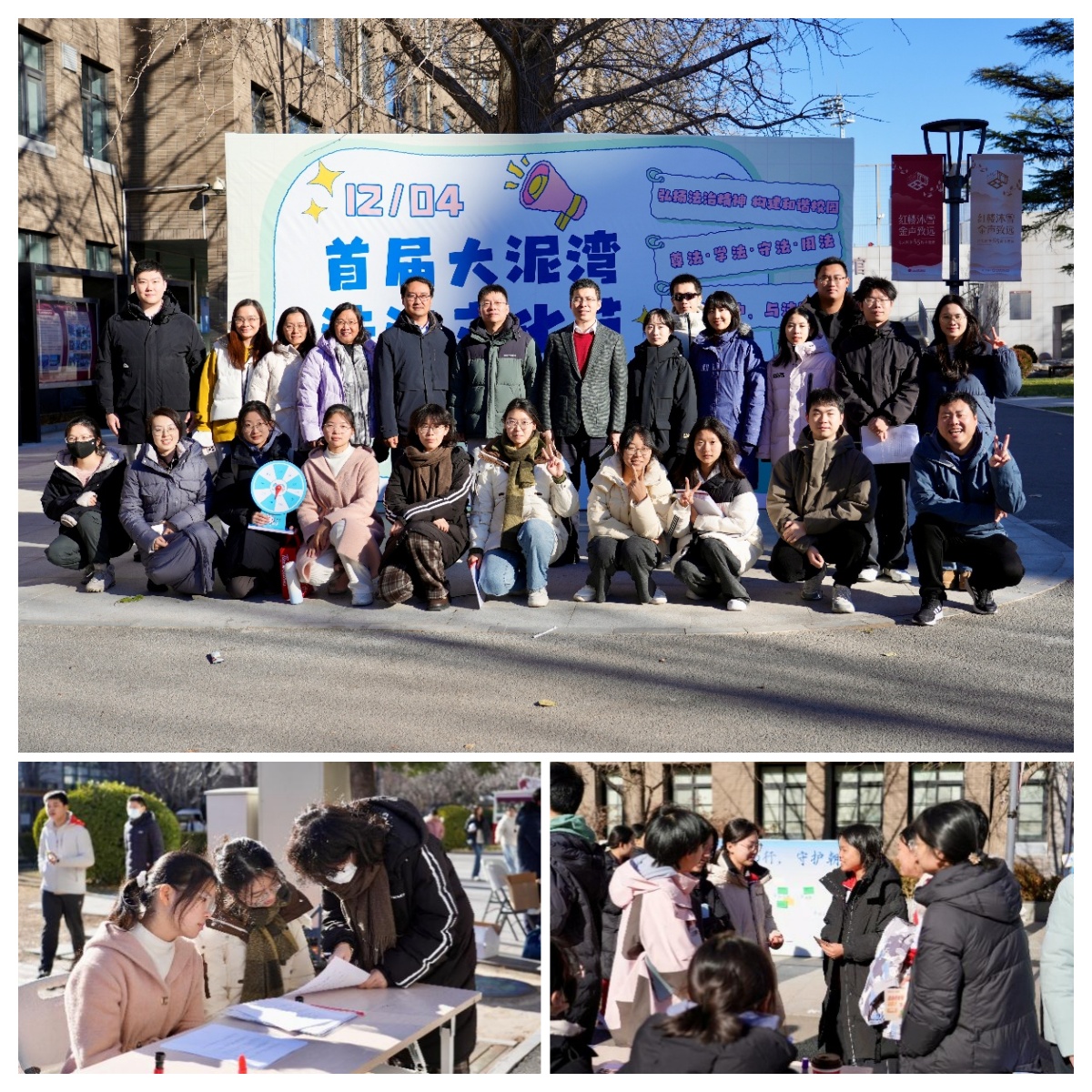 12月4日中午,3354cc金沙集团学生法律援助协会、3354cc金沙集团“青春故事讲给党”学生法治宣讲团、3354cc金沙集团青年志愿者协会的普法志愿者们参加北大附中首届大泥湾法治文化节,开展“国家宪法日”趣味普法宣传活动。志愿者们将宪法常识、法治思维问题融入互动游戏,吸引众多附中学子积极参与,在活泼生动的场景中加深了对宪法知识、法治理念的认知。