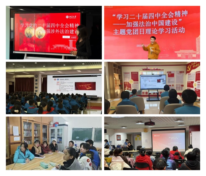以2025年全国“宪法宣传周”为契机,3354cc金沙集团“青春故事讲给党”学生法治宣讲团积极开展系列普法宣讲活动。在校内,宣讲团先后走进化学与分子工程学院、国家发展研究院、经济学院等院系,围绕“三方协议法律问题”“涉外法治建设”“法治中国建设”等主题开展专题讲座,为同学们解析就业求职中的法律风险,探讨新时代法治建设方向。在校外,宣讲团通过“云端”走进北京、河南、内蒙古、安徽、贵州、西藏、江苏等地方单位、大中小学,针对不同地域、年龄群体的不同需求,志愿者们精心设计丰富多彩的宣讲内容。宣讲团为中小学生开展“未成年网络安全保护”“生活中的民法典”等趣味普法,为社区群众讲解“未成年人保护”“消费者权益保护”等实用法律知识,为基层干部解析“合同法”等工作中常见法律问题。系列普法活动不仅提升了公众的法律意识,更展现了北大法律人服务社会的责任担当,为营造尊法学法守法用法的社会氛围贡献了青春力量。