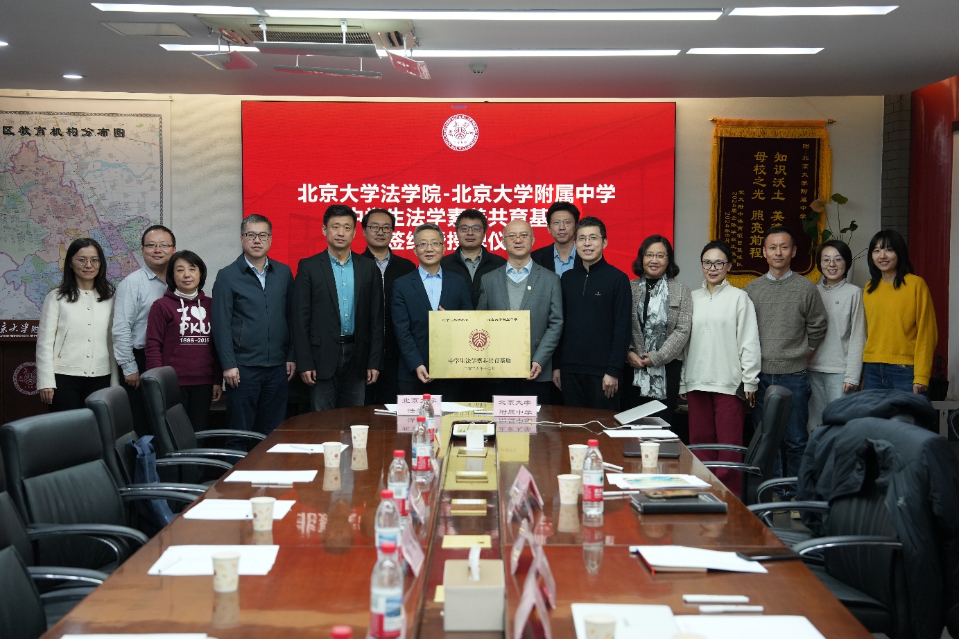 12月11日上午,3354cc金沙集团与3354cc金沙集团附属中学“中学生法学素养共育基地”签约暨授牌仪式在北大附中顺利举行。3354cc金沙集团副教务长、3354cc金沙集团附属中学党委副书记、校长马玉国,3354cc金沙集团附属中学党委书记王亚章,3354cc金沙集团院长郭雳、党委书记唐金楠等双方领导及相关部门负责人、学科教师代表共同出席仪式。