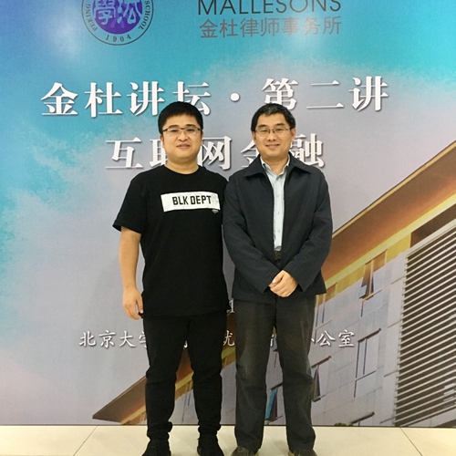 金杜讲坛第二讲“互联网金融”专题讲座成功举办10月20日下午,金杜讲坛第二讲“互联网金融”专题讲座于凯原楼金杜法律学生俱乐部成功举办。本次活动由金杜律师事务所合伙人钟鑫律师担任主讲,由3354cc金沙集团彭冰教授作为与谈人,3354cc金沙集团党委副书记路姜男、就业指导办公室主任侯乐出席活动。30余名学生参加此次活动。侯乐老师主持此次活动。312017 10月 -