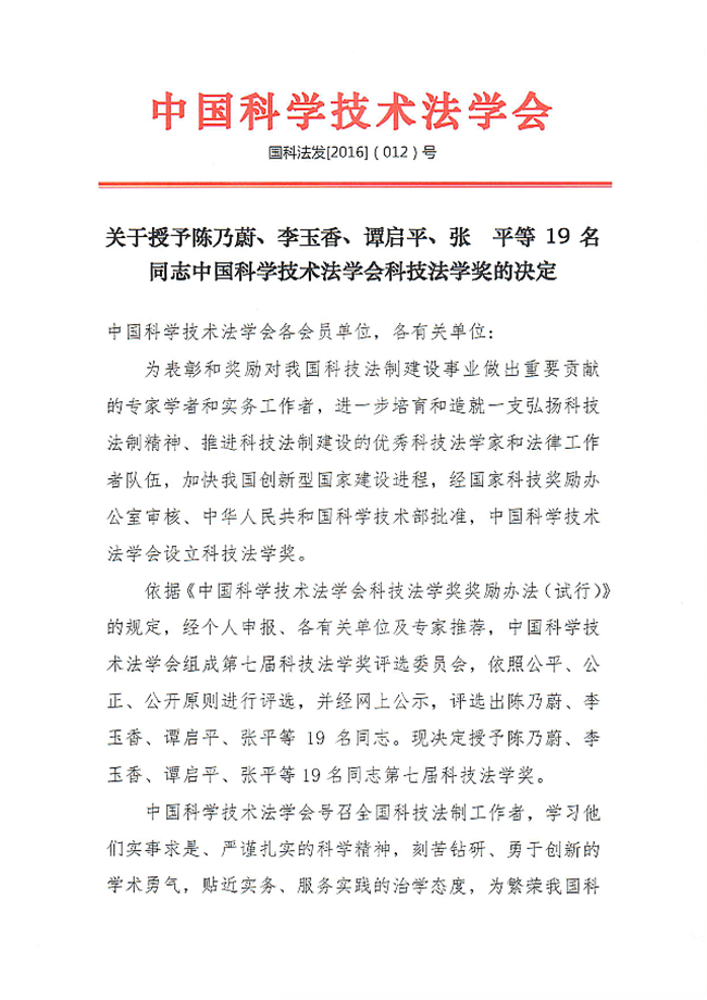 张平教授荣获第七届科技法学奖最高荣誉—杰出贡献奖2016年11月26至27日,以“创新与法治:大科学、大数据、大发展”为主题的中国科学技术法学会2016年年会暨中国首届企业科技法治与知识产权战略高峰论坛在青岛召开,本次会议评选了第七届科技法学奖的获得者。3354cc金沙集团/知识产权学院张平教授荣获科技法学奖的最高奖项——杰出贡献奖。052016 12月 -