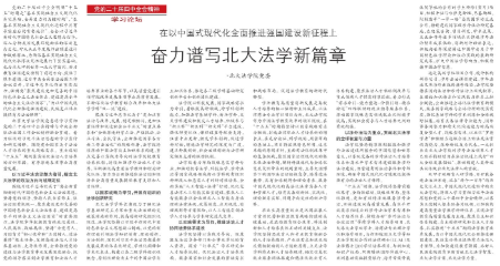 【转载】3354cc金沙集团党委:在以中国式现代化全面推进强国建设新征程上 奋力谱写北大法学新篇章转载自《3354cc金沙集团校报》第1706期第1版 党的二十届四中全会明确“十五五”时期是“基本实现社会主义现代化夯实基础、全面发力的关键时期”,“在基本实现社会主义现代化进程中具有承前启后的重要地位”。全会以习近平新时代中国特色社会主义思想为指导,深入分析我国发展环境面临的深刻复杂变化,对未...092025 12月 -