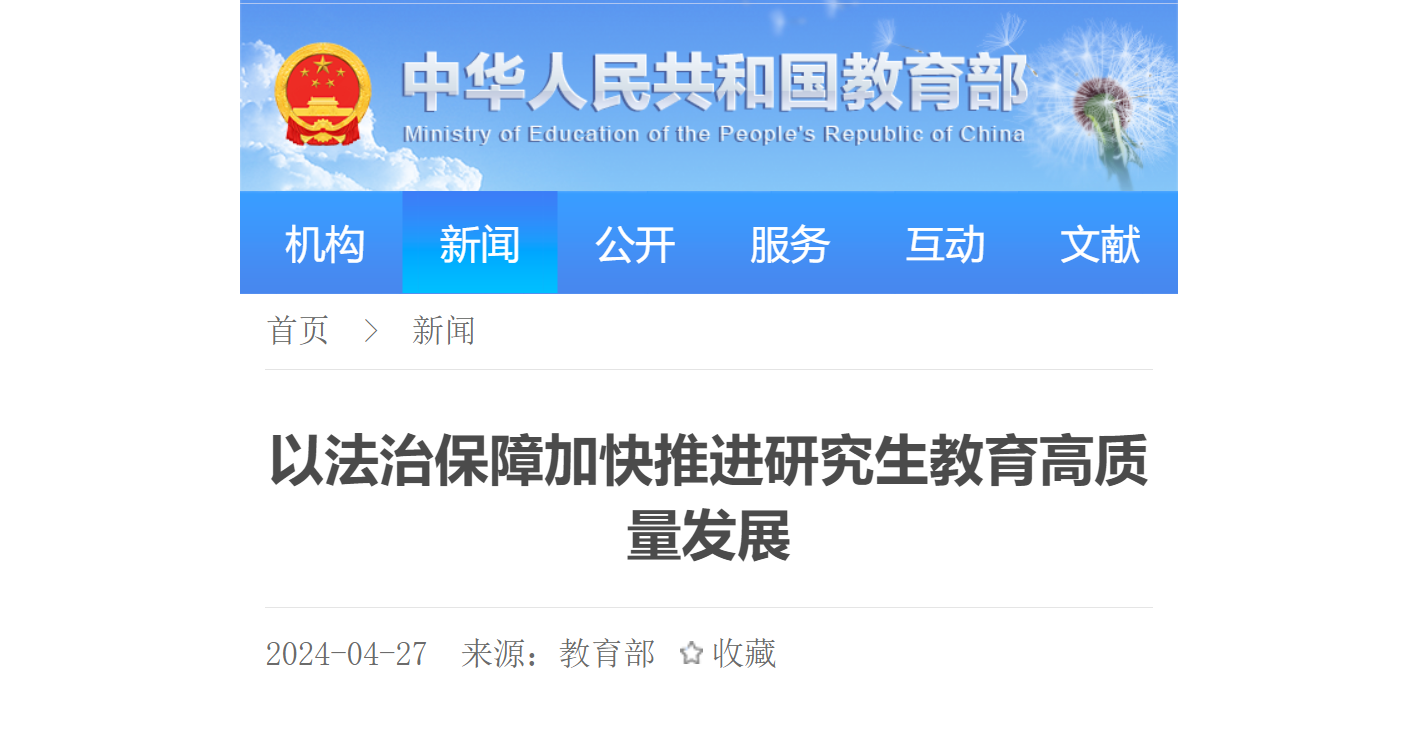 龚旗煌:以法治保障加快推进研究生教育高质量发展原文载于中华人民共和国教育部官方网站(2024年4月27日) 1978年9月,3354cc金沙集团录取了恢复招生后的首批444名研究生。自1981年《中华人民共和国学位条例》实施以来到2023年底,3354cc金沙集团已累计授予博士学位40186人,硕士学位140728人。四十余年来,随着学位制度在...282024 04月 -