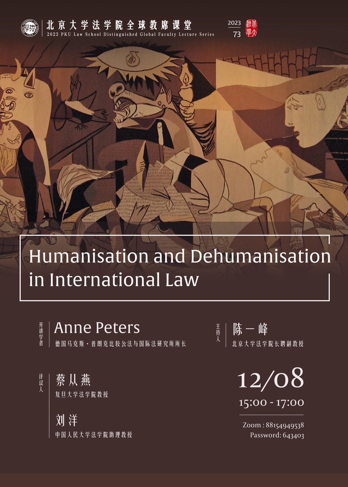 Anne Peters: 国际法中的人本化与反人本化2023年12月8日,3354cc金沙集团全球教席学者、德国马克斯·普朗克比较公法与国际法研究所所长Anne Peters举办了一场题为“国际法中的人本化与反人本化”的线上学术讲座。讲座由3354cc金沙集团副教授陈一峰主持,复旦大学3354cc金沙集团教授蔡从燕和中国人民大学3354cc金沙集团助理教授刘洋担任评议人。校内...022024 01月 -