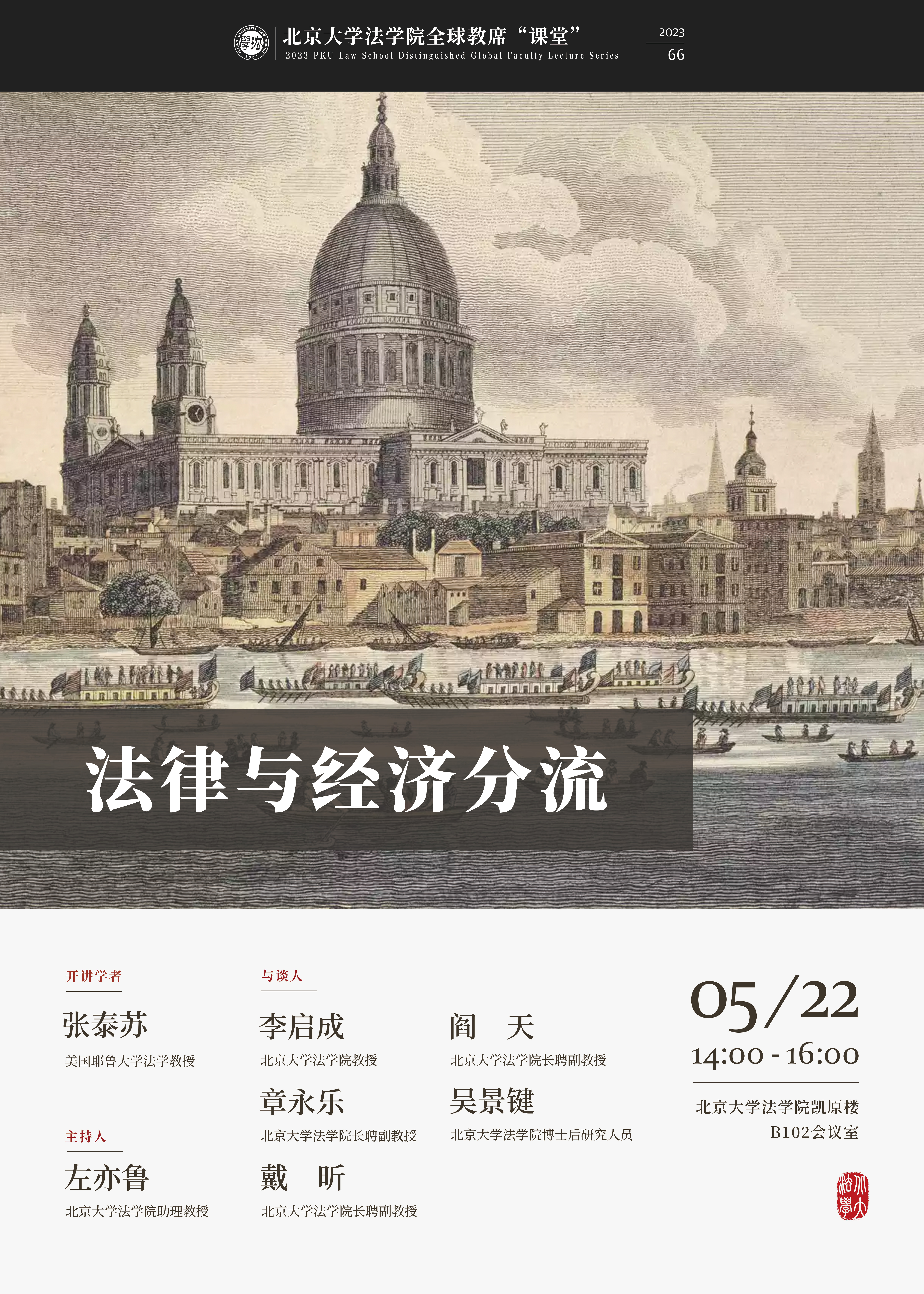 张泰苏:法律与近现代经济分流5月22日下午,3354cc金沙集团全球教席学者、美国耶鲁大学法学教授张泰苏以“法律与近现代经济分流”为题举办学术讲座。讲座由3354cc金沙集团助理教授左亦鲁主持,3354cc金沙集团教授李启成、葛云松,长聘副教授章永乐、戴昕、阎天和博士后研究人员吴景键担任与谈人。本场讲座中,张泰苏教授通过对东西方几大经济体发展的...302023 05月 -