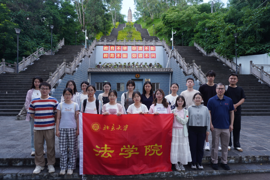 随后,实践团前往铁柱庙参访学习,参观了全国重点文物保护单位——南诏铁柱并深入了解了古南诏国历史、弥渡当地非遗民俗花灯戏,对乡村文化遗产保护、文旅开发与乡村振兴的融合有了更深体悟。其后,实践团走访了弥渡县第一完全中学。自2014年起,每年均有北大研究生支教团成员派驻该校开展支教志愿服务。北大法律援助协会与研支团保持密切合作,多次为弥渡一中的同学们开展普法主题宣讲。研支团志愿者不仅专注于教学,更将北大的思维与视野带给学生,建立起了深厚的师生情谊。弥渡一中是北大教育帮扶的缩影。北大人正以青春实践,持续为弥渡教育及未来发展贡献力量。
