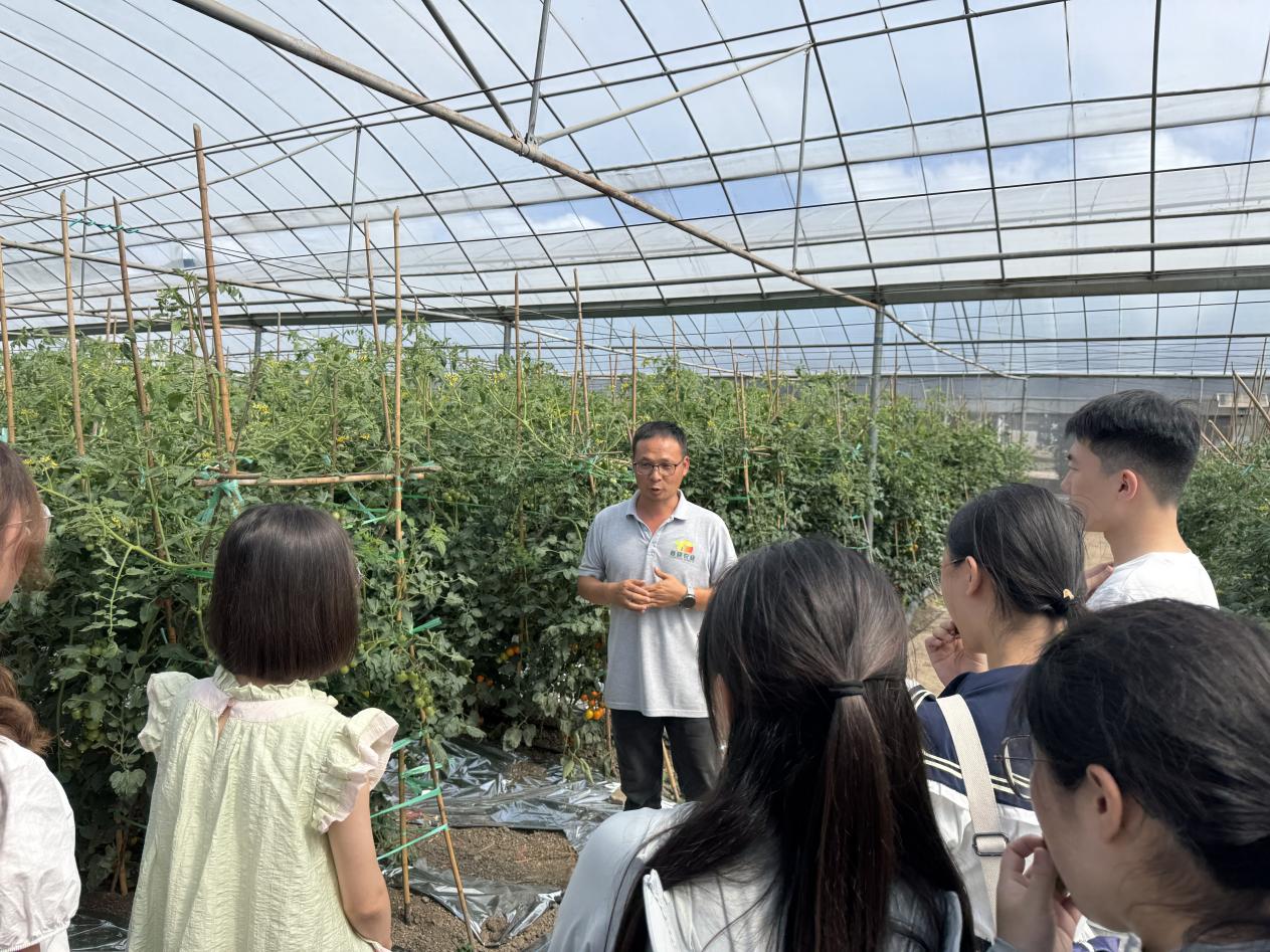 随后,实践团一行实地调研弥渡县百利春晓种苗公司与大理耘飞农业有限公司,深入了解现代农业育苗技术及特色果蔬产业发展情况,并进一步观摩乡村振兴的“弥渡方案”——“双绑”产业联结机制。通过这一组织形式创新,公司与农户实现了利益共享、风险共担、合作共赢,亦激发了乡村产业发展新动能,实现了协同效应最大化。通过调研,同学们深刻感受到科技赋能农业的广阔前景,学习了促进农户与企业合作共赢的乡村振兴可行路径。