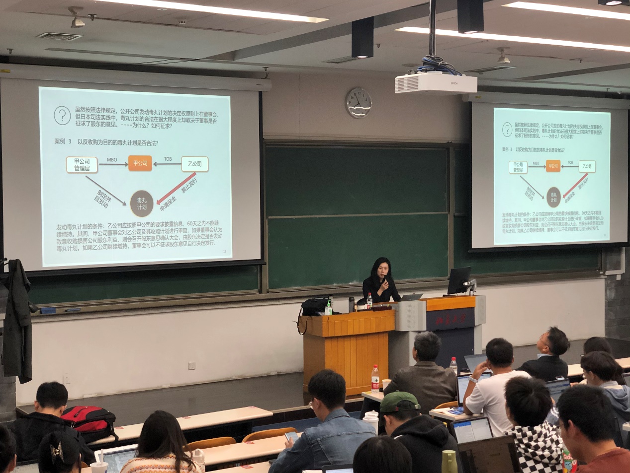 讲座的内容共分为两个部分。在第一部分,温教授从授权资本制、可发行股份总额、可募集资本总额等基础概念的讲解入手,表示日本最后规定可发行股份总数大于公司设立时已发现股份数。但是新股发行可能会给股东带来权益降低、比例稀释等问题,所以引入授权资本制度以后,董事也不可以自由发行新股。在日本,并不是所有新股发行都可以授权董事会,即使是授权董事会决定发行的情形也存在例外。温教授结合日本《公司法》的具体规则进行了系统的讲解。在第二部分,温教授结合中国与日本的实际案例,讲解了授权资本制度下的控制权争夺中所存在的具体问题。由于向特定第三方发行新股,可以达到稀释收购方的表决权目的,因此定向发行,往往被用于反收购目的。然而,如果没有授权资本制,新股发行作为反收购策略的可操作性不大。此外,温教授还介绍了日本的股东新股预约权和毒丸计划在反收购案件中法院如何判断目的的正当、程序的公正问题。