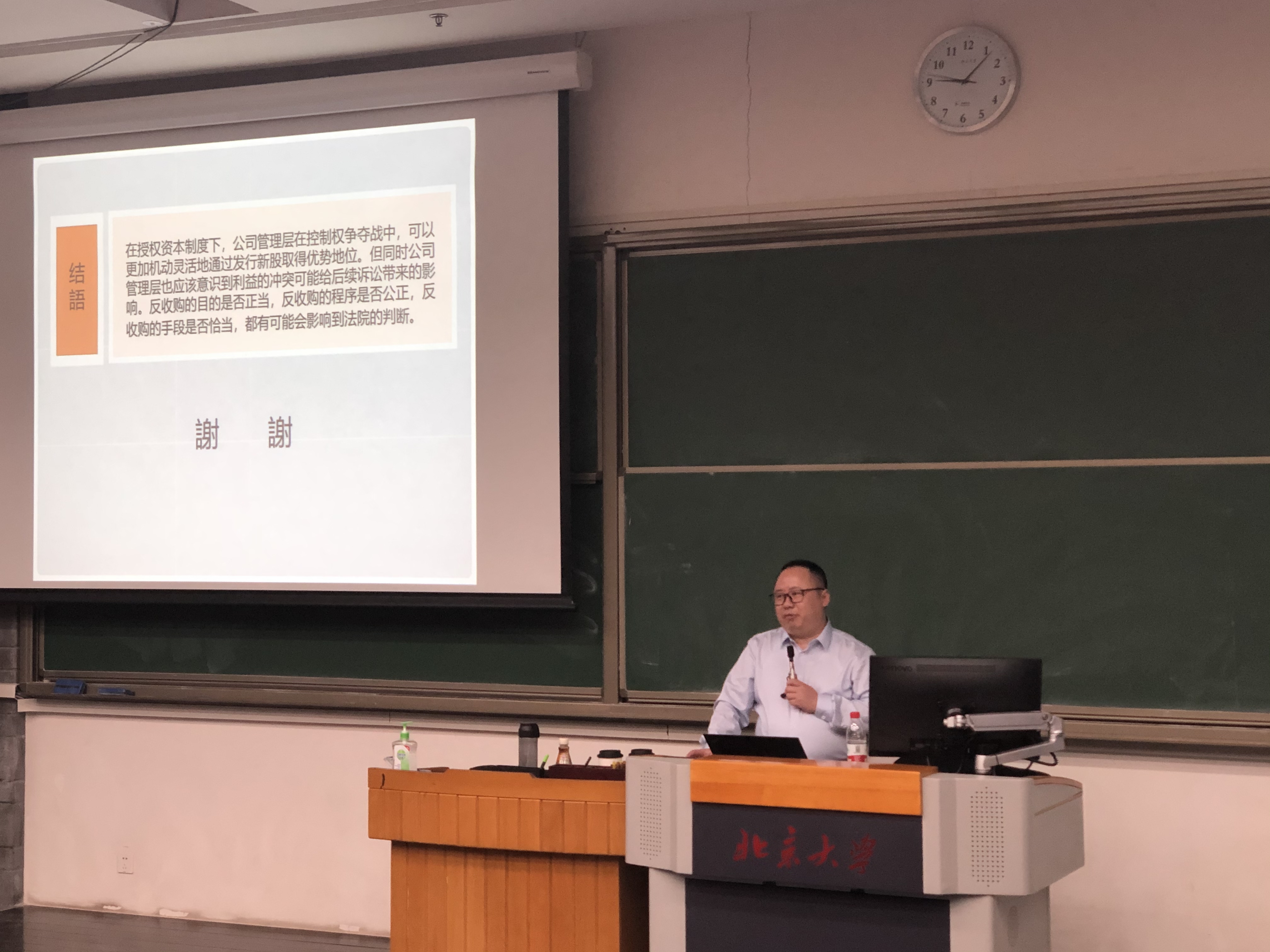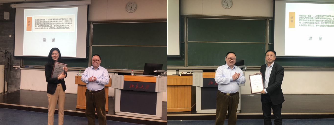 在温教授完成了讲座内容的讲述后,傅穹教授与李崇文律师分别从我国授权资本制改革以及我国反收购案件实务两个方面发表了精彩的点评。提问环节中,在场同学争相提出与新股预约权、反收购中股东利益保护等相关的疑问,温教授也对同学们的困惑一一作答,让同学们受益匪浅。最后,蒋大兴教授结合我国公司实践与公司法改革,对讲座主题做了深刻的点评与总结。本次论坛于在场师生满场掌声中圆满结束。