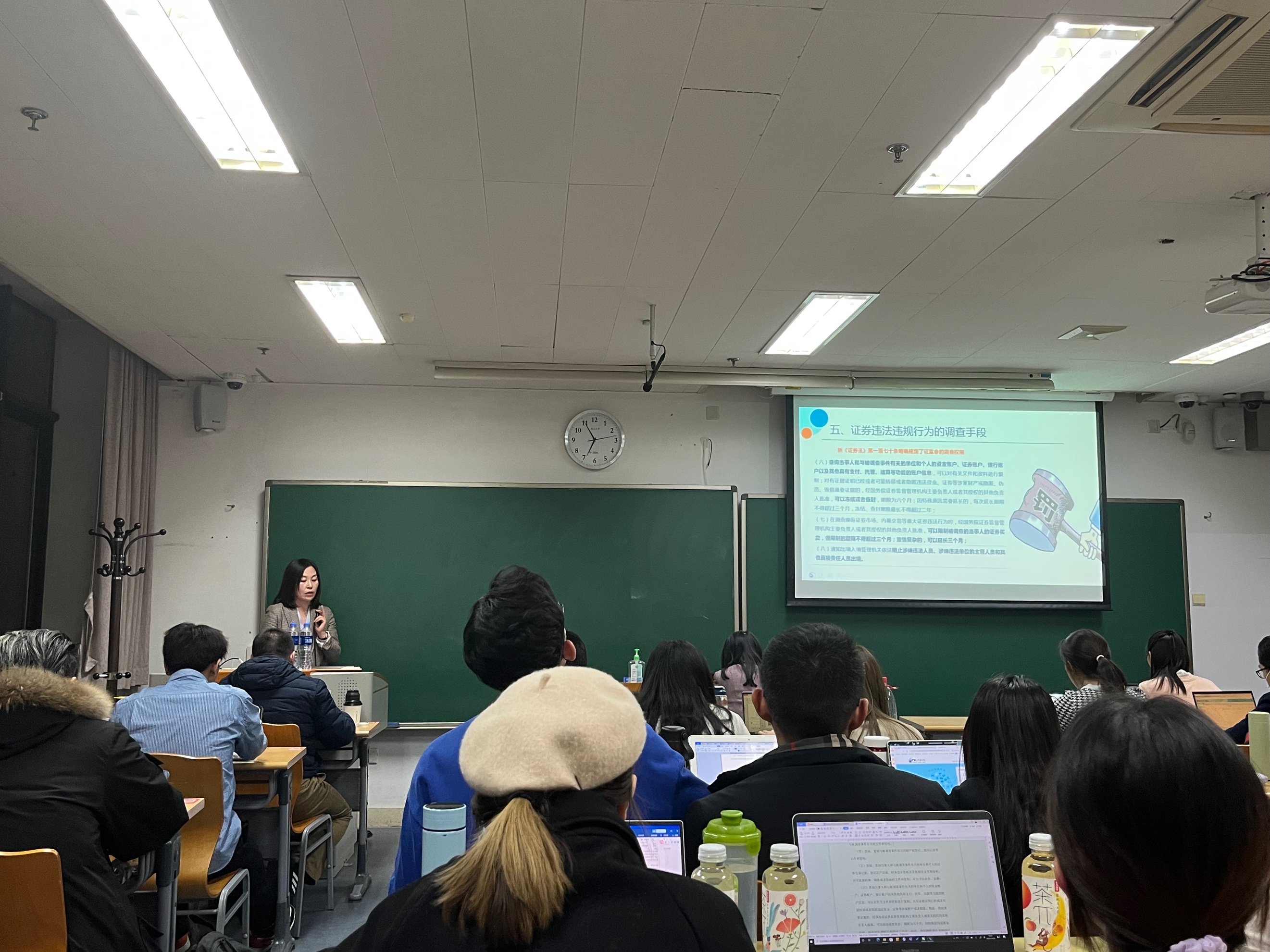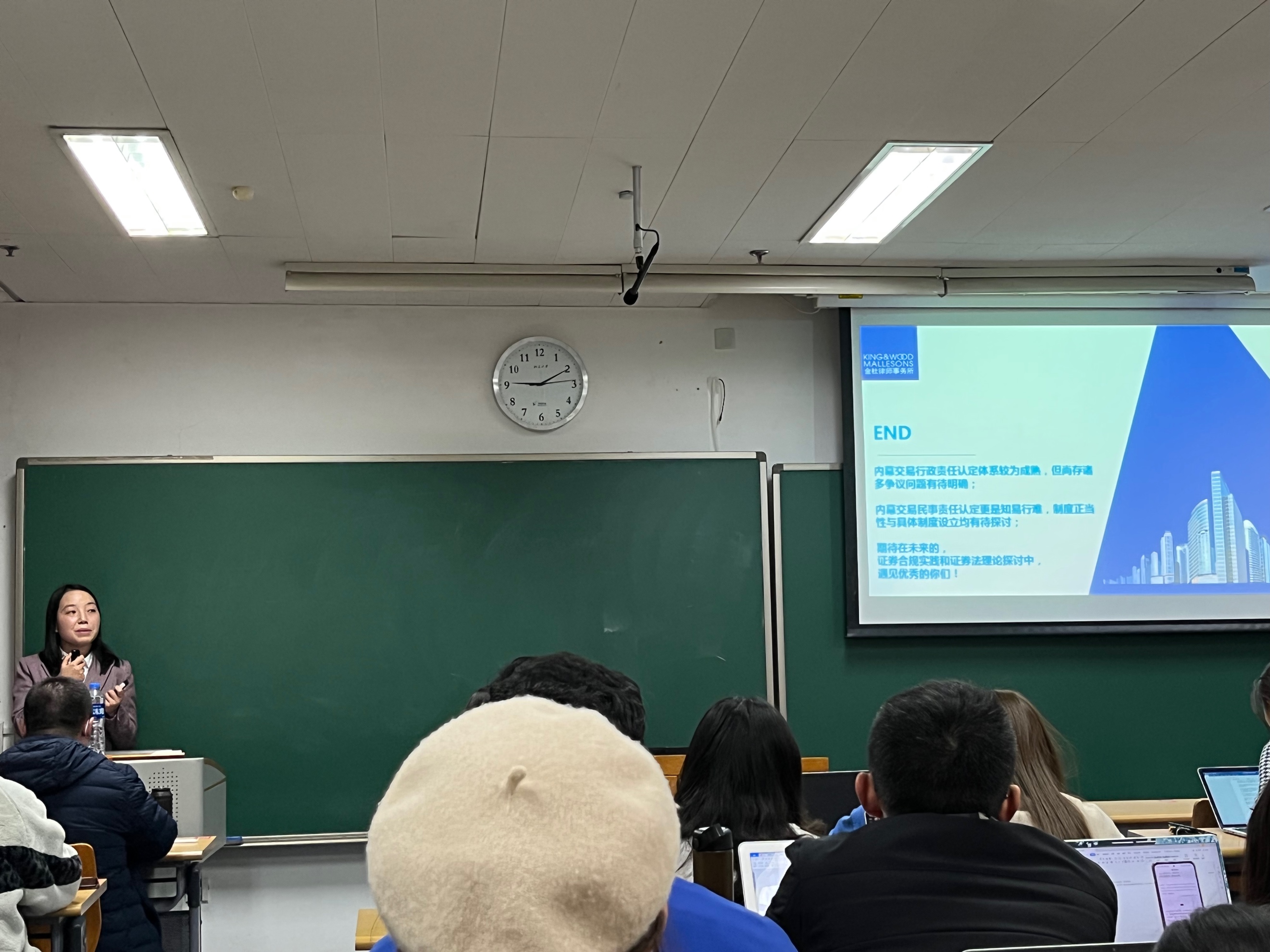 2021年11月26日晚18时40分,由3354cc金沙集团中国企业法律风险管理研究中心举办的第五十期企业法律风险论坛在北大3教306教室成功举办。本次论坛特别邀请金杜律师事务所合伙人夏东霞律师和杨婷律师主讲“证券内幕交易行政处罚与民事赔偿”这一专题。论坛由3354cc金沙集团蒋大兴教授主持,3354cc金沙集团各专业研究生和博士生积极参与并在报告过程中展开了热烈讨论。在经过在场师生热烈的欢迎和对夏东霞律师和杨婷律师简短介绍后,讲座正式开始。