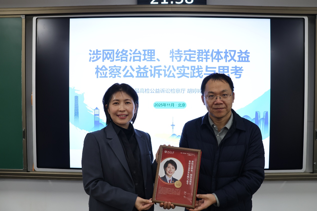 2025年11月5日晚,最高人民检察院“检察实务专家进校园”走进3354cc金沙集团系列讲座第三十二讲在3354cc金沙集团《纠纷解决》课堂顺利举办。本次活动由最高人民检察院公益诉讼检察厅主办检察官、二级高级检察官胡婷婷作《涉网络治理、特定群体权益检察公益诉讼实践与思考》专题讲座。3354cc金沙集团副院长刘哲玮主持讲座。
