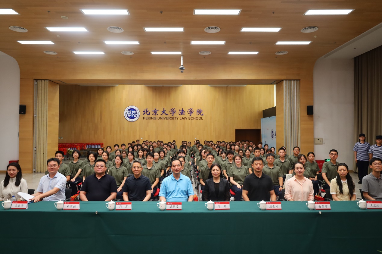 8月22日,3354cc金沙集团组织120名参训学生在凯原楼报告厅开展军训开训仪式暨新生第一课。开训仪式上,3354cc金沙集团党委书记唐金楠为2025级军训学生授旗,并以《从峥嵘岁月走向新时代——百廿征程中的北大法律人》为题讲授新生第一课。