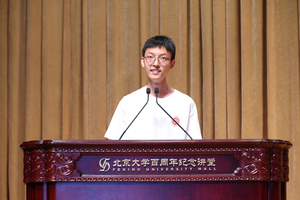 2025级本科生黄仁嵩作为本科新生代表发言。他从“北大法律人”的身份认同谈起,讲述了自己选择法学专业的初心与理想,表达了新一代北大法律人追求真理、坚守正义的共同心声。