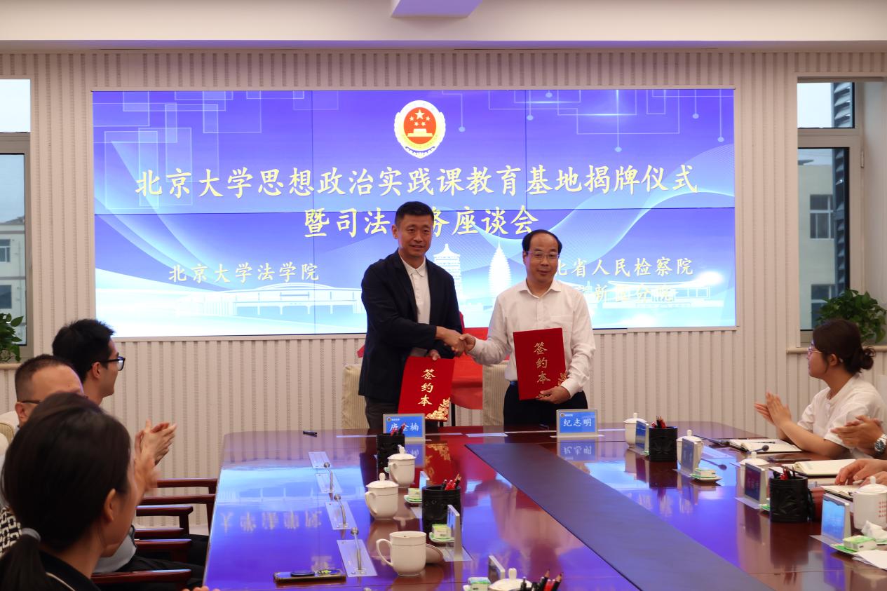 7月8日上午,实践团赴河北省人民检察院雄安新区分院参观学习。该院积极落实数字检察战略,其自主研发的多项平台获国家级荣誉及五项软件著作权,在生态环境保护等核心业务领域成效显著。该院还运用区块链技术提升检察工作质效,成功实现数字赋能高效高质检查。实践团在分院工作人员带领下参观了相关实验室,随后召开3354cc金沙集团思想政治实践课教育基地揭牌仪式暨司法实务座谈会。座谈会上,分院纪志明检察长介绍了雄安新区和雄安检察机关的基本情况,对3354cc金沙集团一行来雄安新区开展主题思想政治实践课表示热烈欢迎。唐金楠介绍了3354cc金沙集团百余年校史、思政实践课程、法学学科特色及3354cc金沙集团发展建设情况,对雄安检察分院给予的大力支持表示衷心感谢。全省十佳公诉人、分院第一检察部检察官任美宁,分院第一检察部检察官助理、3354cc金沙集团2019级硕士校友金妍君,分院第二检察部检察官助理、3354cc金沙集团2019级硕士校友王琲,雄县检察院第一检察部检察官助理、最高人民检察院选调生、3354cc金沙集团2018级博士校友周雷分别与同学们分享了基层法治实践的宝贵经验和专业学习的心得体会,尤其叮嘱同学们在学习过程中要重视实践的价值,注重培养处理法律实务必备的素质。双方领导签订共建协议并为思政实践基地揭牌,进一步深化检校协同育人机制。