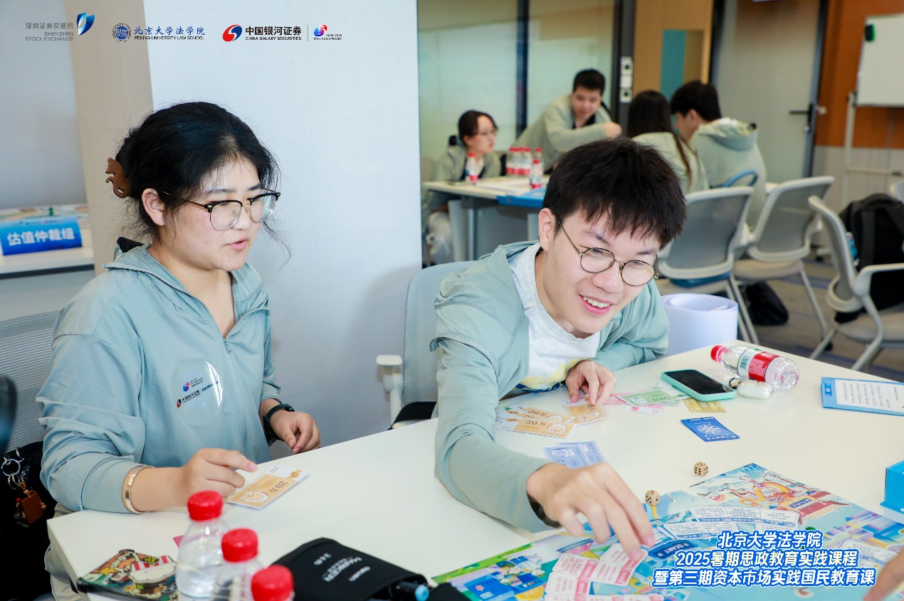 接着,实践团来到办公层体验财商桌游。活动前,周海均从合规审查、风险防控、交易架构设计等维度,讲解了法律知识在金融规范中的关键作用,并鼓励大家投身金融报国。随后,成员分组扮演投资者,运用启动资金,根据市场变化和家庭因素进行投资决策、管理支出,体验财富波动。游戏结束后,各小组整理收益、总结经验并分享心得。经由这次充满挑战与乐趣的桌游体验活动,同学们深刻感悟到投资决策既需要有扎实的金融知识和法律知识、良好的心理素质和敏锐的市场洞察力,更需要出色的应变能力和决策智慧,从而在压力之下权衡风险收益,进行理性选择。