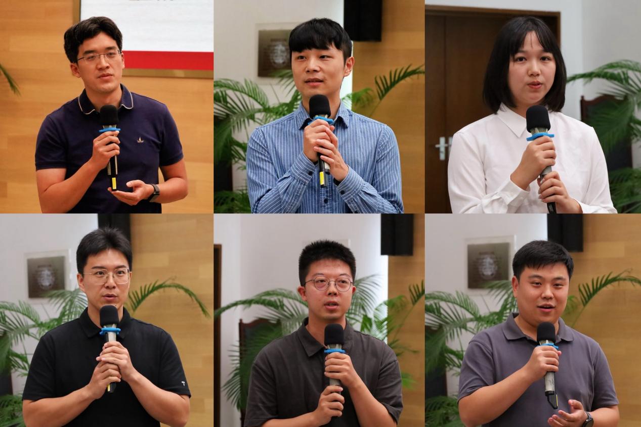 新入职教师吴景键、邹星光、劳泽佳和新入站博士后段沁、龚涛、范子豪分别同与会老师见面并作自我介绍。