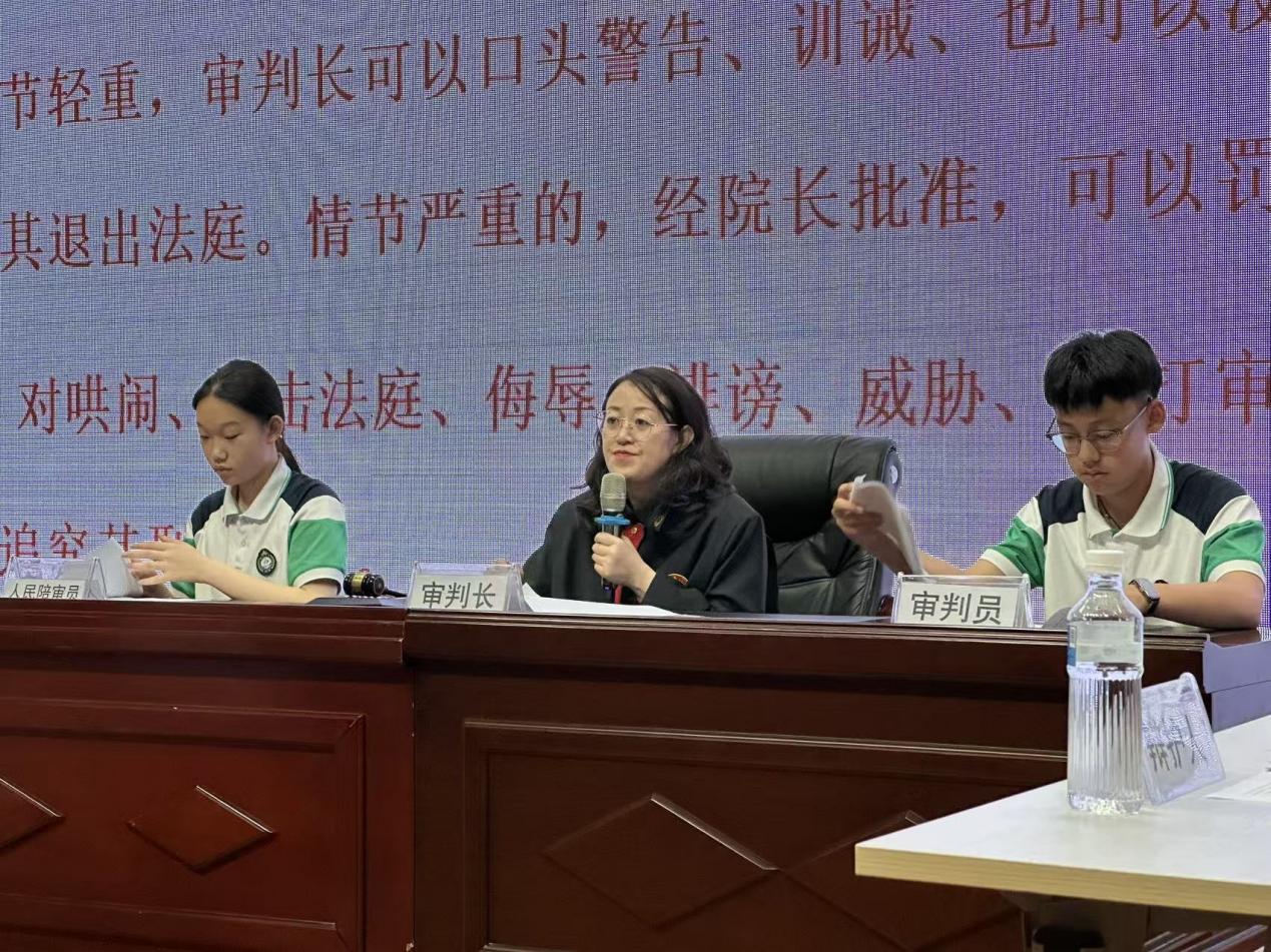 在模拟法庭环节,学生亲身参与案件审理的全过程,深入体验司法程序与法律实践。实践团成员为学生们详细讲解法律条文与司法程序,引导学生深入理解法治精神。学生们积极准备案件材料、组织庭审陈述,亲身体验司法审判过程,就案件中的法律问题、证据收集、庭审技巧等展开热烈讨论,分享各自的学习心得与实践经验。实践团成员与中学生通过模拟法庭活动,更加深入地认识到法律实践的重要意义与作用,深刻体会到法治教育在推动基层普法、促进青少年法治观念养成中的重要功能。