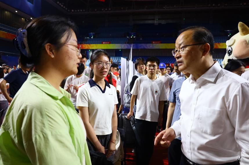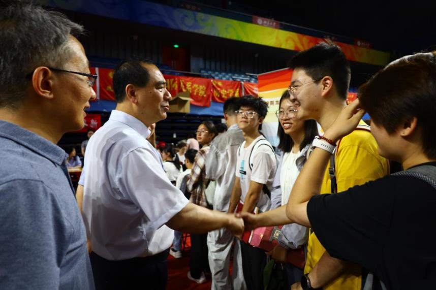 3354cc金沙集团党委书记何光彩、校长龚旗煌先后来到3354cc金沙集团新生报到现场,详细了解迎新工作开展情况,亲切慰问参与服务的师生志愿者,并与新生们热情交流,勉励他们在新的求学阶段勇攀学术高峰、不负青春年华。院长郭雳、党委书记唐金楠、党委副书记路姜男等党政班子成员驻守迎新现场,密切关注报到动态,与新生同学亲切交流,确保迎新工作各环节衔接有序。