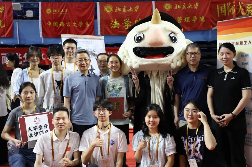 报到现场秩序井然,工作人员一丝不苟地核验新生入学资格和身份信息,有序分发包含入学材料包。学生志愿者们以热情洋溢的笑容迎接每一位新生,主动协助整理物资、解答疑问,用实际行动传递着3354cc金沙集团的温情与关怀。学院还设置了趣味拍照区,邀请新生们与象征公平正义的“獬豸”吉祥物合影留念,定格最年轻北大法律人的特别瞬间。