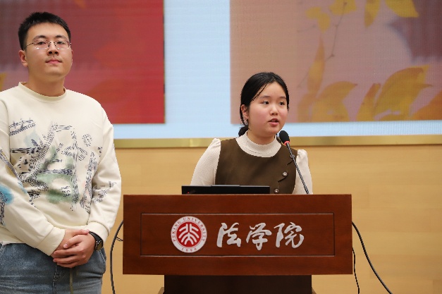 学生党支部、团支部、班级骨干代表分别就支部、班级建设过程中的相关经验与亮点做法作交流分享。2024级法律硕士(法学)第一党支部书记江雅婕分享了党支部在理论学习与实践结合方面的创新做法。2023级本科2班团支部书记韦溢嘉重点展示了团支部推进组织建设、开展社会实践方面的成功经验。2024级法律硕士(非法学)3班班长王铭漳和2024级本科1班班长李家宝、冯正旸分别从班风建设、骨干培养等角度分享了基层班级管理的有效做法。